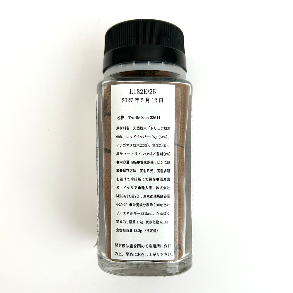 | 原材料 | 黒サマートリュフ・イナゴマメ粉末・食塩・香料 |