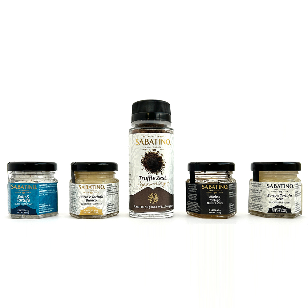 サバティーノトリュフ・5種グルメセット『トリュフパウダーゼスト・白トリュフバター・黒トリュフバター・黒トリュフハニー・トリュフ塩』ギフトセット