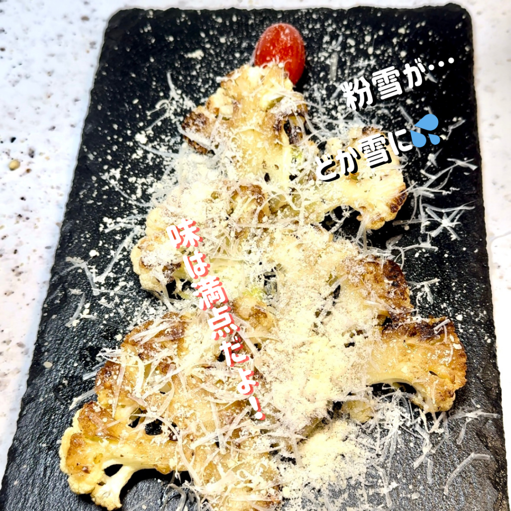 カリフラワーでクリスマスツリーを作ったら…粉雪がドカ雪に🎄でも味は満点レシピ✨