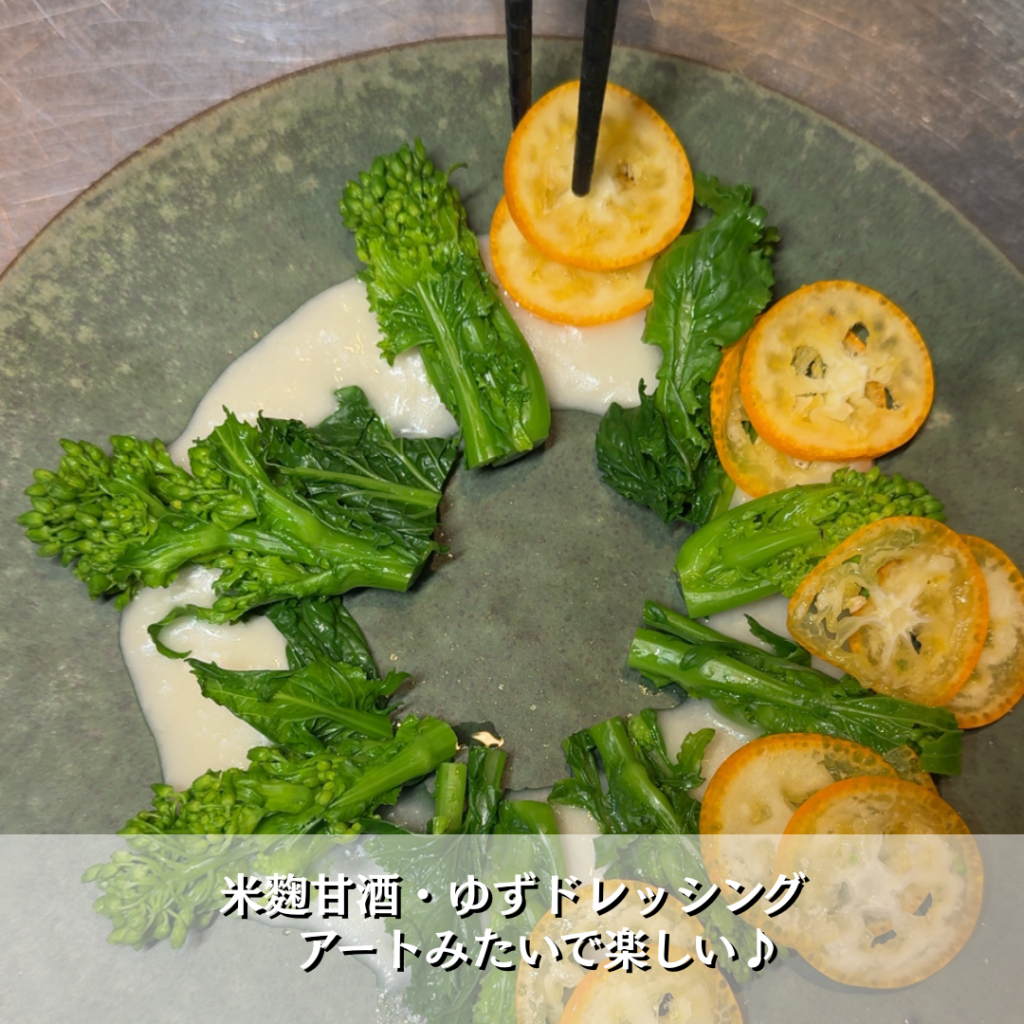 春を呼ぶ♪菜花とキンカンのサラダ×米麹・ゆずドレッシングでアート