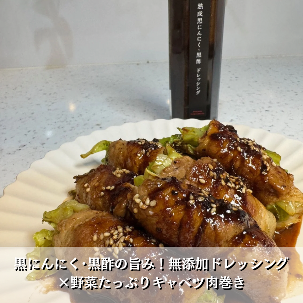 【無添加 熟成黒にんにく黒酢ドレッシング】で作る!キャベツたっぷり肉巻き