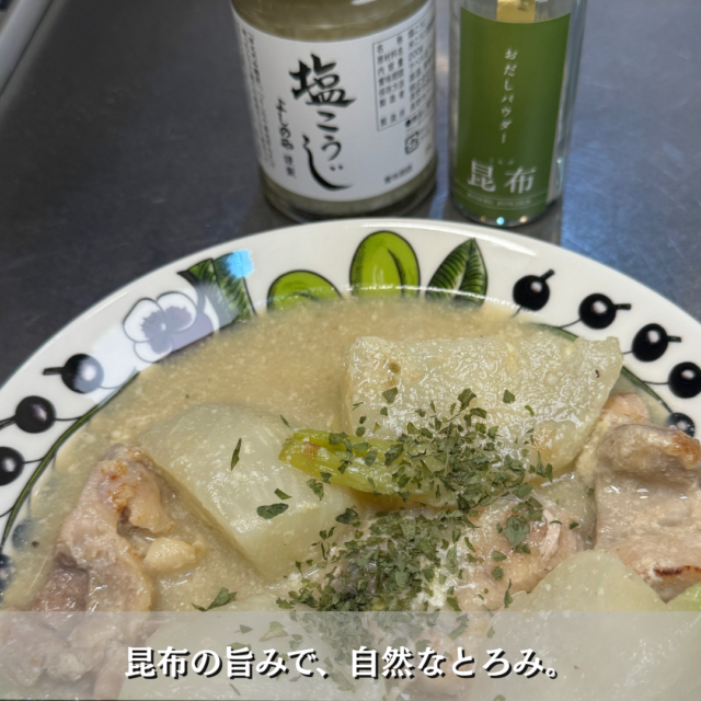 旬のカブを使った、クリーミーな豆乳スープ。 塩こうじでチキンを柔らかくして、やさしい味付けにします。 仕上げには昆布をそのまま粉末にした昆布出汁パウダーを少し多めに❣ 昆布の成分がスープに溶け込み、 片栗粉 […]