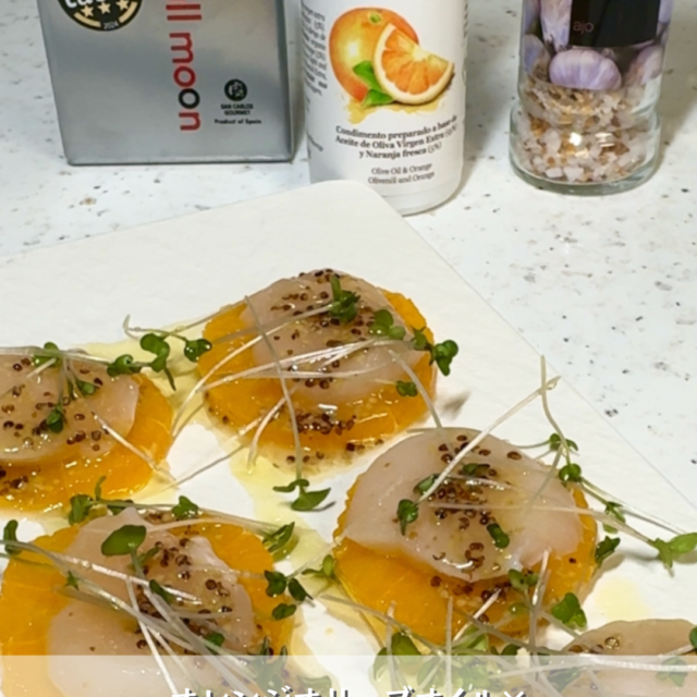 オレンジ香るアサーダオリーブオイルで ホタテのカルパッチョ💛