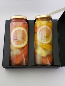 ギフトに最適なフルーツピクルス2種、黒箱入り。