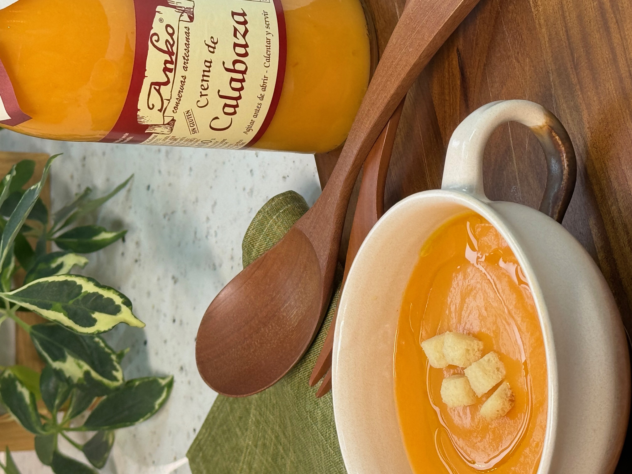 カボチャのクリームスープは、鮮やかな黄色いカボチャをベースにしています。