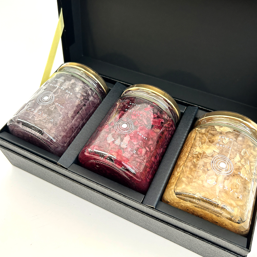 | SPICE主原材料 | 玉葱(国産)、粗挽きガーリック、ブラックペッパー、漬け原材料(穀物酢、砂糖、蜂蜜、塩) |